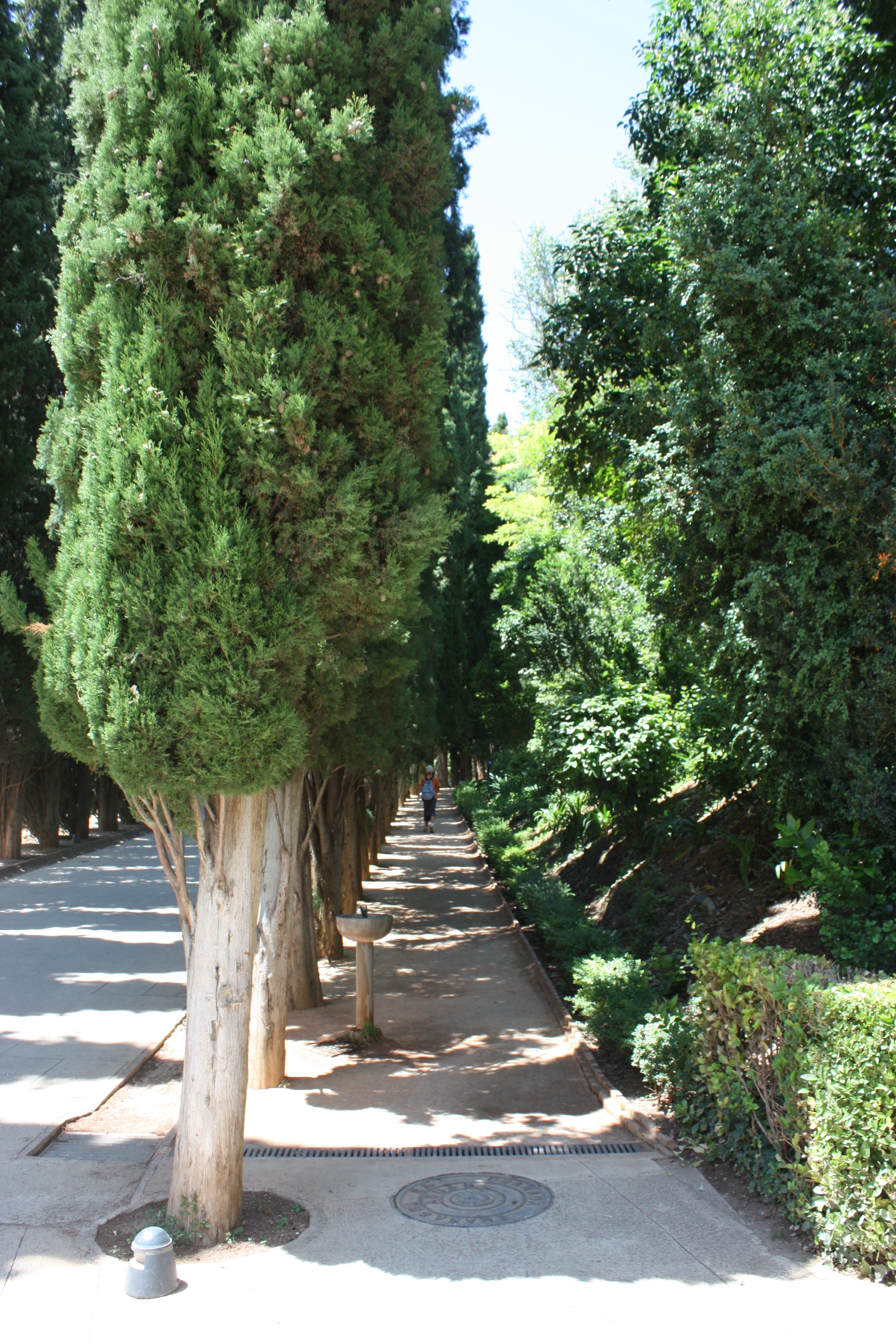 Alhambra means red one but it should just mean heaven. This place hold the summer and winter castles for the old Arabic rulers. People used to think the Arabians had special powers because this building was made of iron and when it rained it would run red, thus the name. Alhambra definitely mirrors a mythical magical garden. Trees tower over you standing 40 feet high but only 2 feet wide.