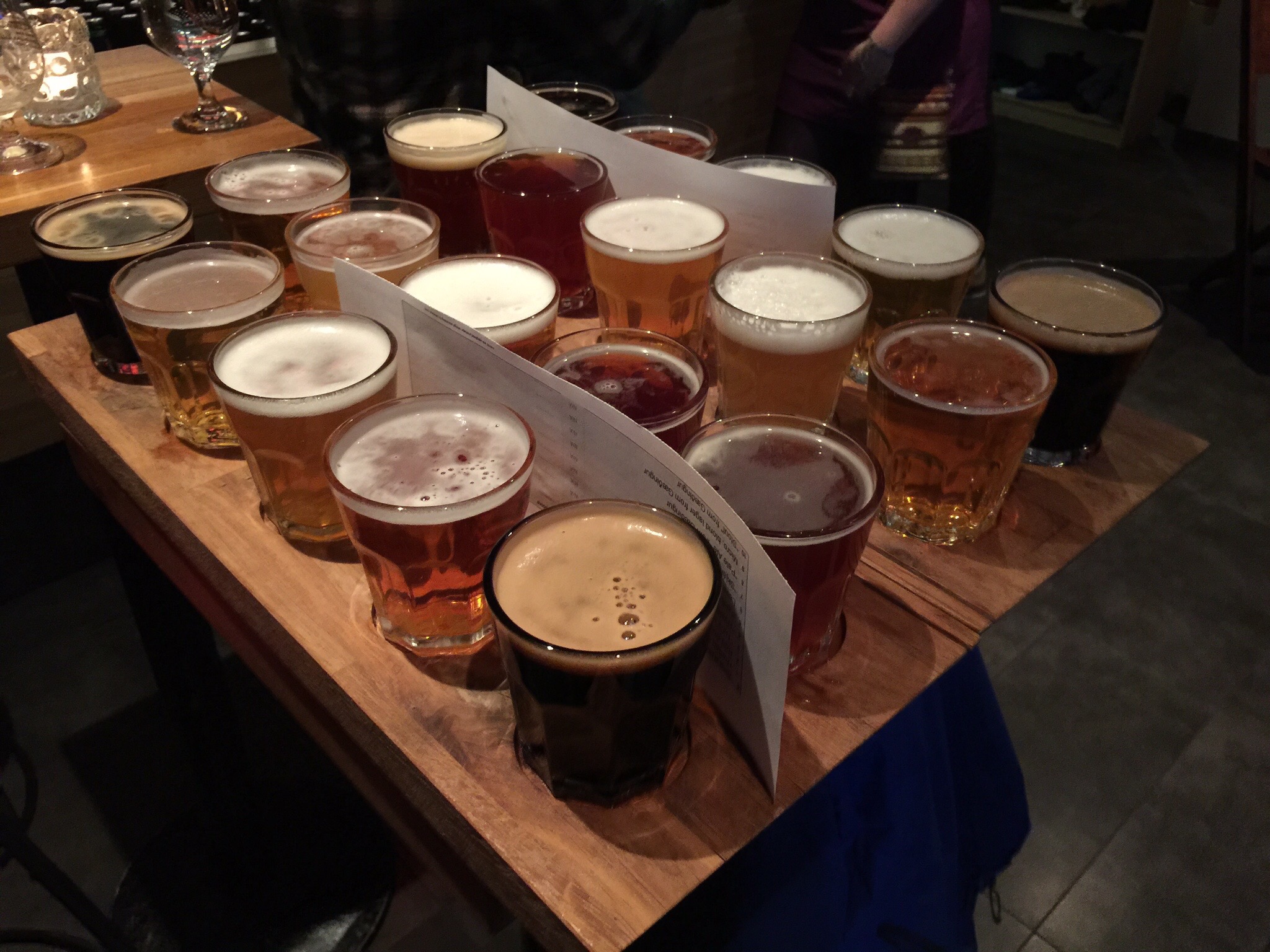 The bar scene in Reykjavik is unique. There are some American bars like a Big Lebowski bar and a Chuck Norris restaurant but we head to Micro Bar for a flight of beer. All flights are not created equal. This one is 10 beers and almost 6 oz a piece. We settle down and start tasting.