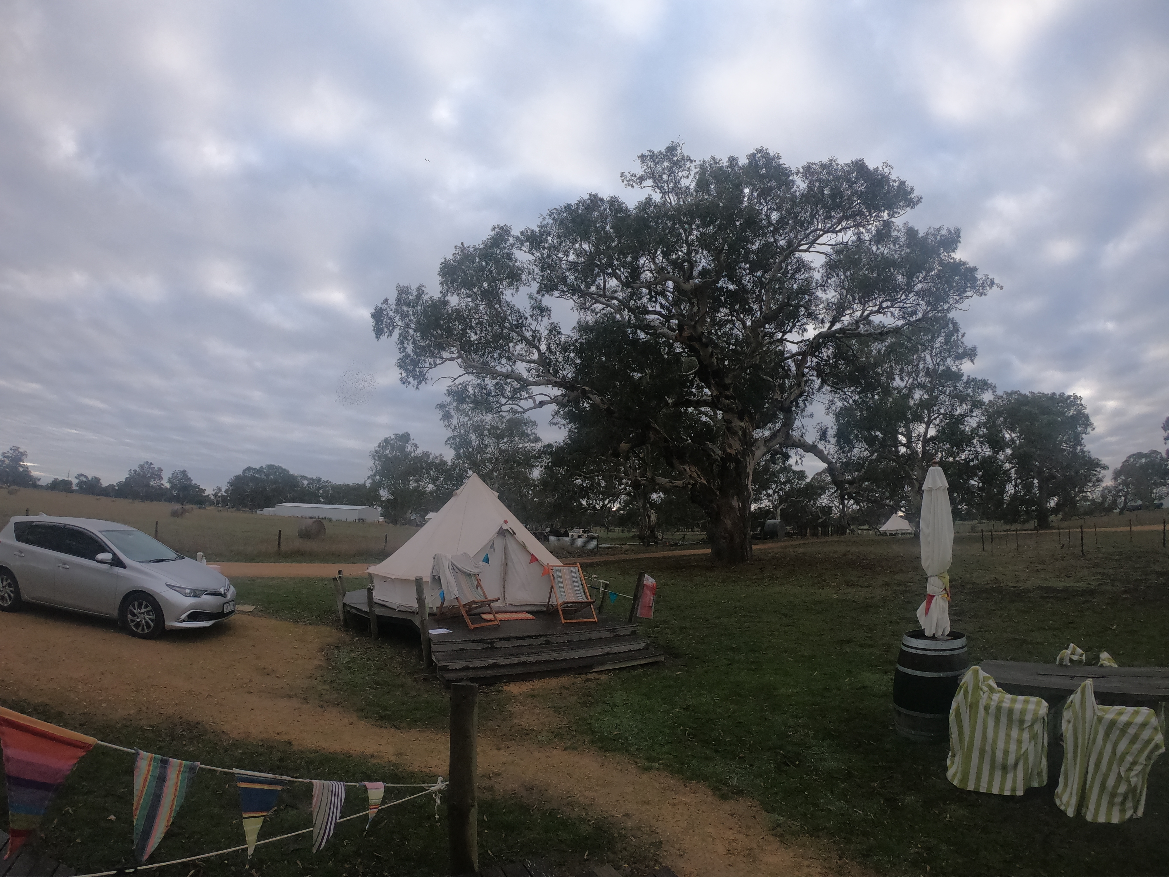 The rest of the weekend went by beautifully. We walked around the farmers market, then the Blue Lake, aptly named as it is blue, that sits in an old volcano, and then drove up to Coonawarra for some wine. It is overwhelming how much wine is here. There is vineyard after vineyard for the entire drive. We googled which ones had free tastings and then drove in. That night we went glamping, since my camping trip had been cut short I was still craving those peaceful nights by the fire under the stars.