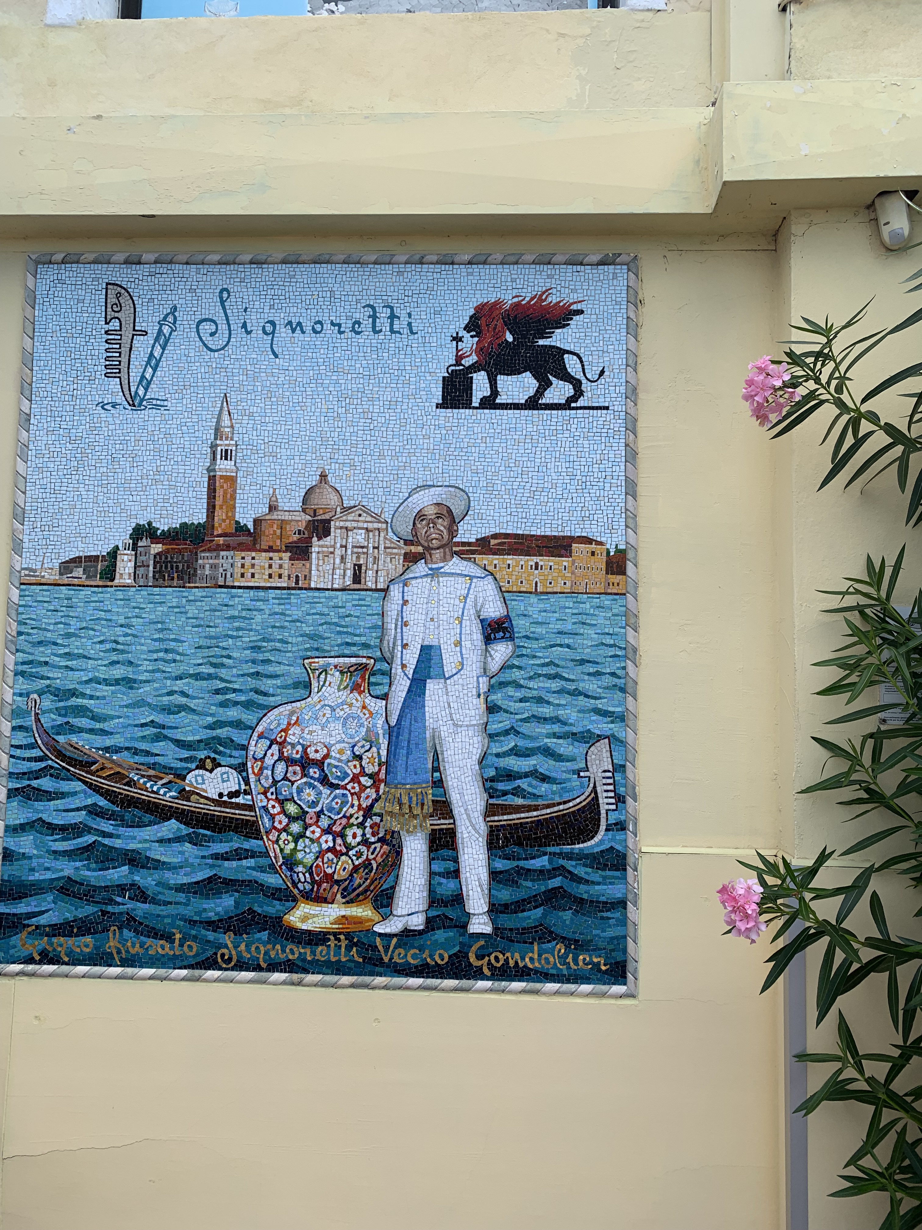 Morano has been blowing glass since the 1300s. We follow the tour through and watch them live blow glass into the shape of a horse. The talent is astonishing. My wallet is itching but there is not anything calling me.