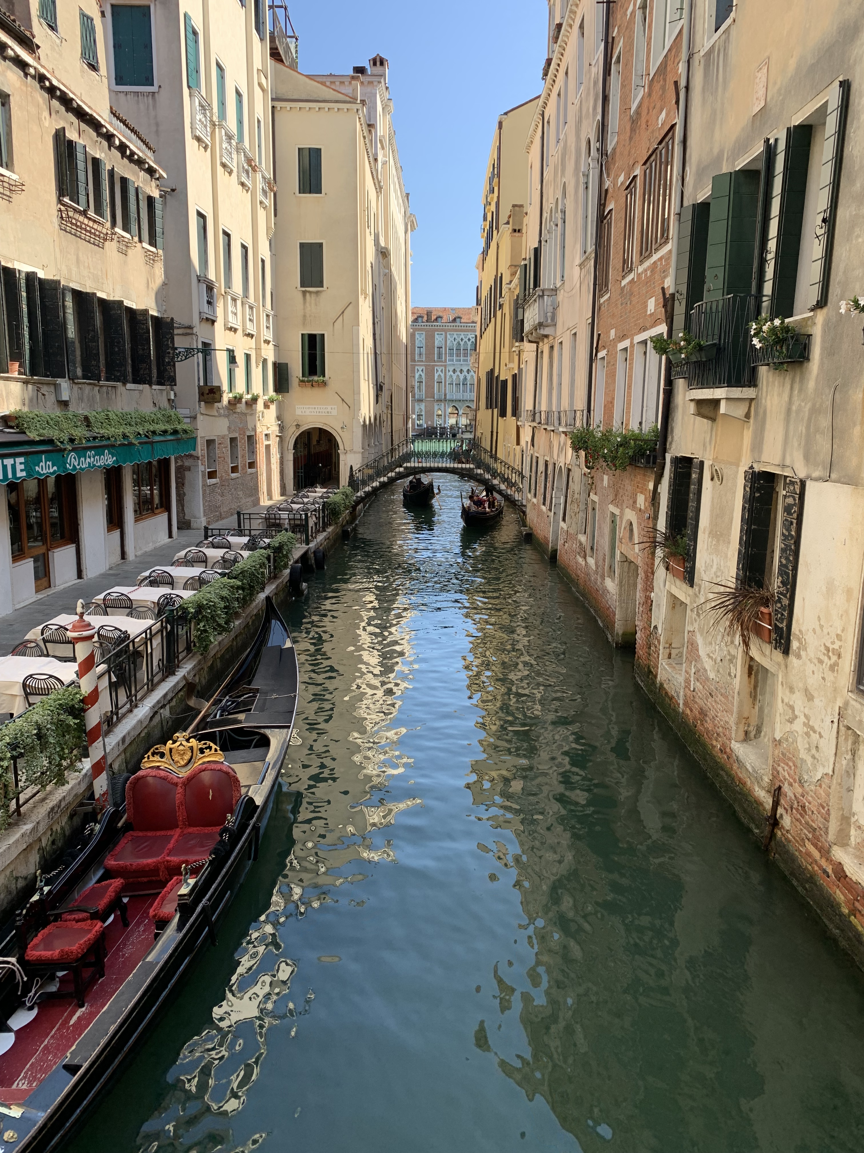 Danielle had maneuvered for us to take the spare gondola ride. We had a couple have to leave because of a family emergency. I dropped everyone off at the hotel and went to meet her. Danielle and I carve through the water streets of Venice appreciating leaving the loud harbor where Italians were fighting to get people onto boats. It is surprising how quiet it is down these water streets.
