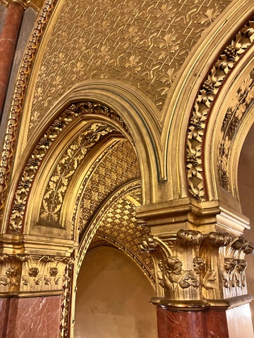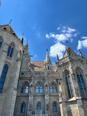 Put on your walking shoes and SPF to explore the Buda side of this city. Across the famous chain bridge, up the funicular, enjoy the overlooks from Buda Castle, walk around the gardens and through the city streets over to Fisherman’s Bastion and The Church of Our Lady of Buda Castle or in Hungarian Budavári Nagyboldogasszony-templom. There are benches under some trees for a break from the sun and fountains to fill up your water. The view of the Danube through the porticos are stunning. Take a different path back to the funicular by heading west to see down the hill to the rest of the city. This street, Tóth Árpád stny, is a tree lined path with gorgeous views of the old government buildings. More benches to sit and take in the views.