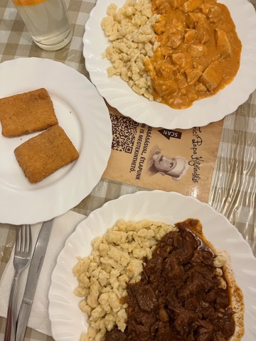 My friend joined me after using her time after our work trip to visit Salzburg first. We grabbed the 48 hour city pass. Specifically so we could end the day on the Danube with a sunset boat tour. For dinner, we walked over to Kisharang Étkezde. Recommended as the place to get goulash we were happy to be hungry here.