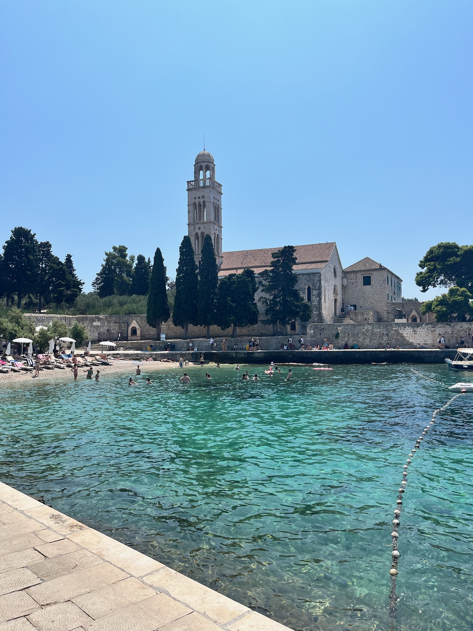 Home to blue caves, which many of the islands can boast, but more importantly where Momma Mia was filmed. We had a tour take us from Stiniva beach to Smokova beach to the blue lagoon. This lagoon is large enough for you to drive the boat in. The island is huge and they charted us all around. The highlight was a secret beach fit with a bar hidden in the cliffs. We jumped from the cliffs and same from the boat to the bar. The water is so salty that your body mostly floats. The water here is some of the prettiest I have seen in the world. Those who didn’t want to swim could get pulled in a dingy. The rocky beach shaded from the cliffside gave us a breat from the strong sun.