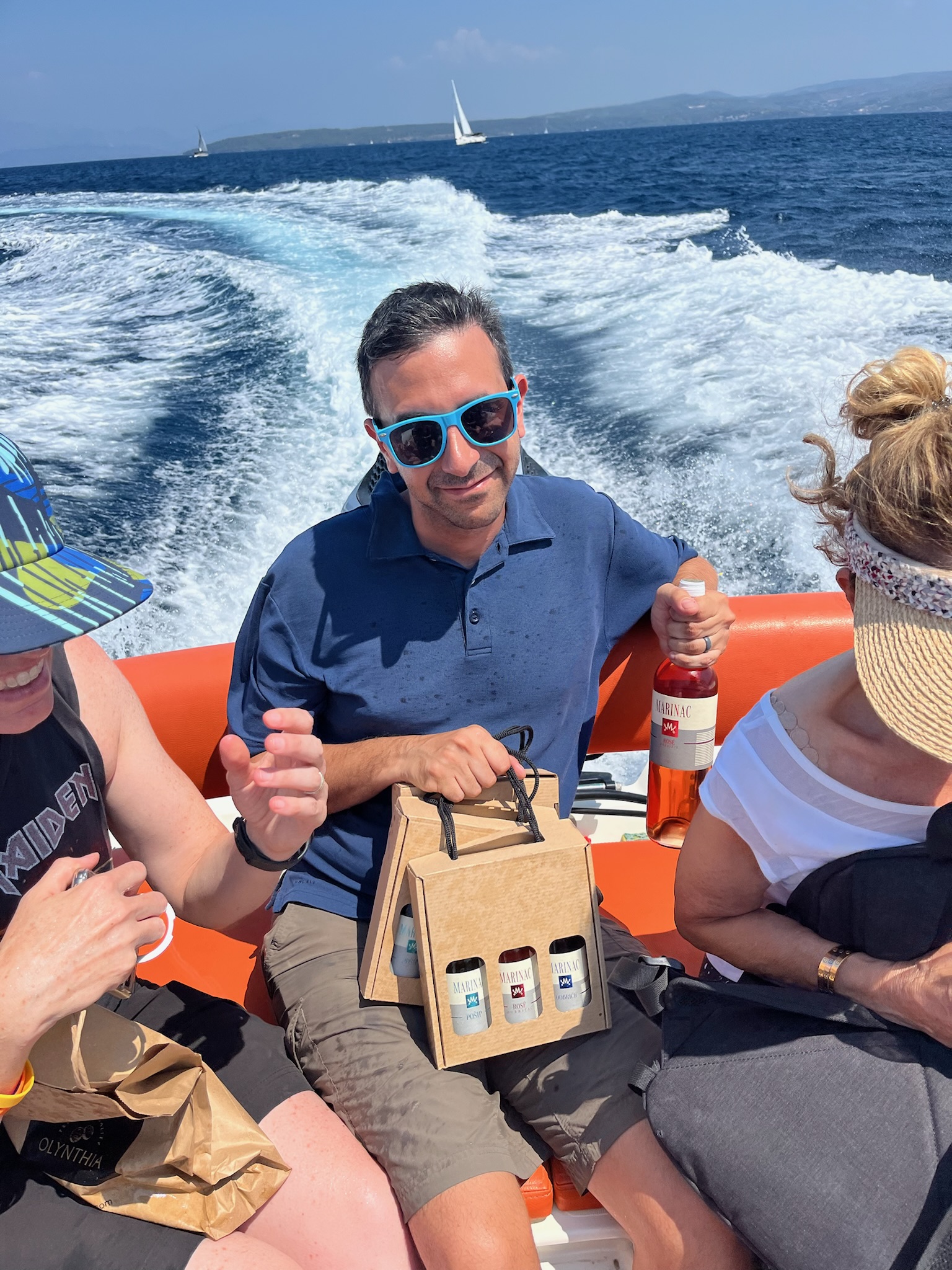 The vineyards sit right on the main road and are your pathway to the beach. The calm inlet waters allow you to sit and drink and enjoy the warmth. We met a woman solo traveling and adopted her into our group for the afternoon. We walked to the ferry along the coastline and headed back to change for dinner.