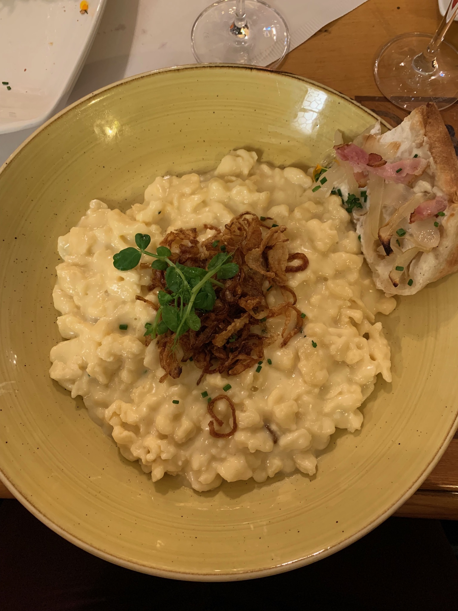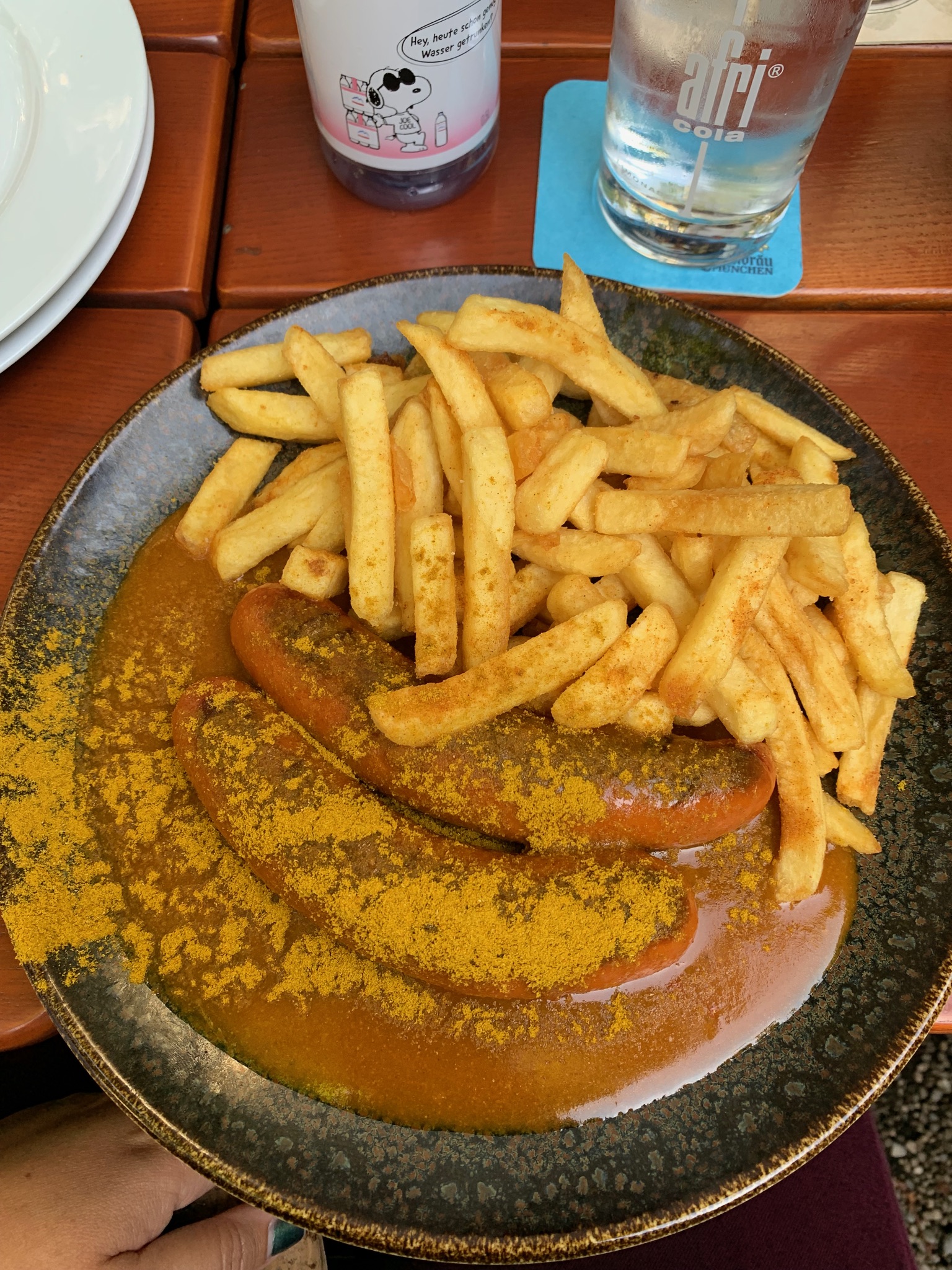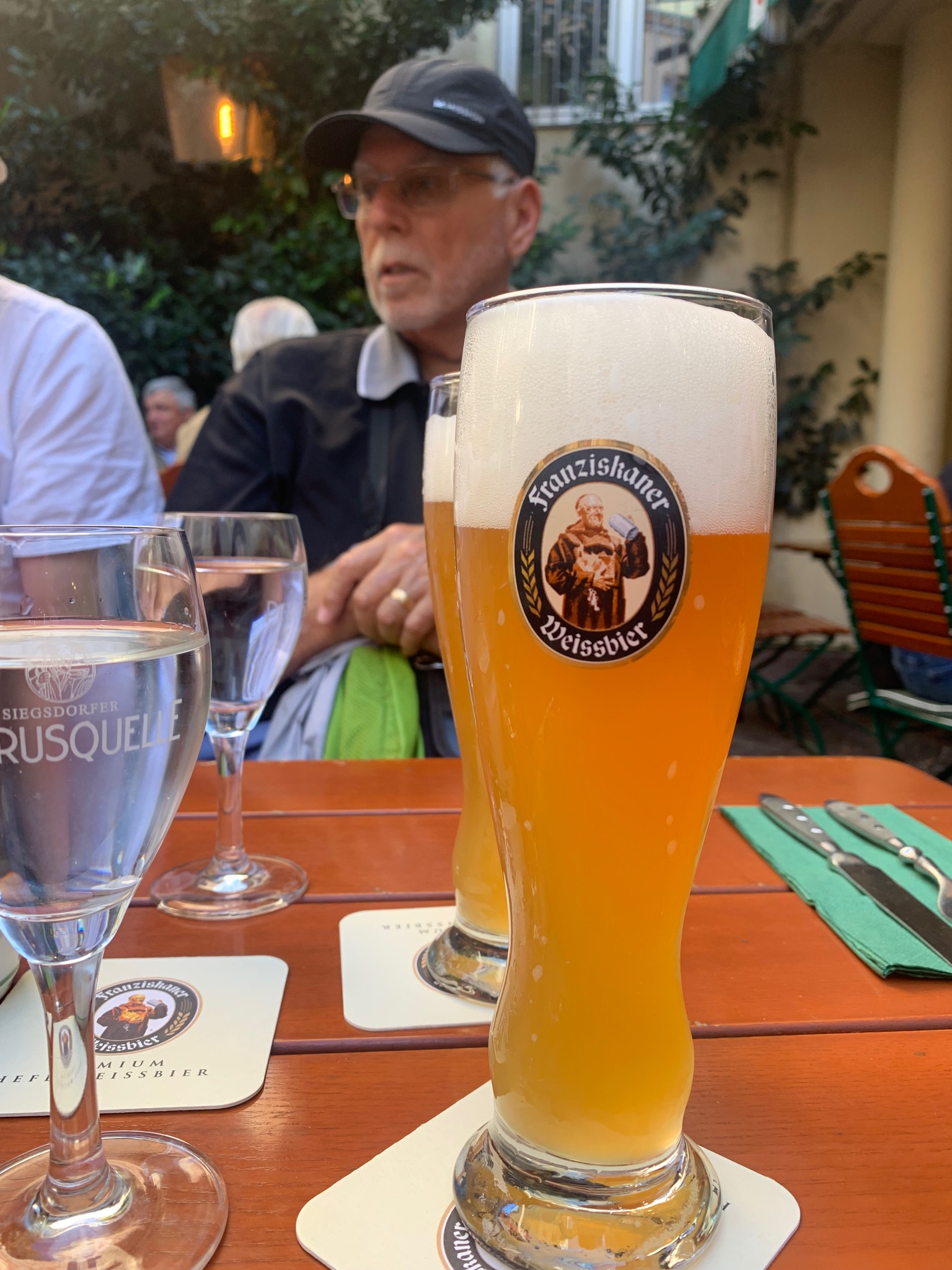 He told us about a riverside pathway that was covered with street art. We first stopped at the Aldi so we could see the OG. Then enjoyed the treelined path with river below the cliffside. Exhausted from the walking we headed back to Marienplataz for a real German dinner.