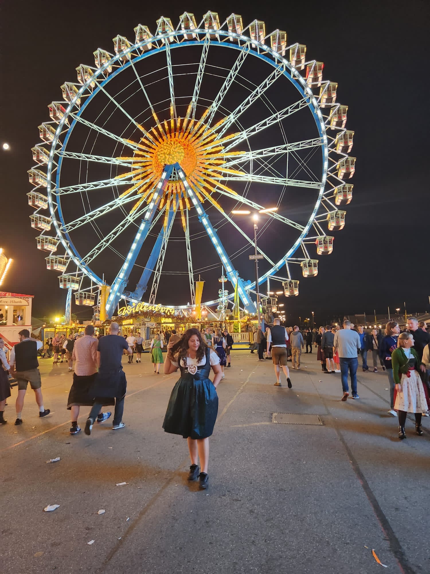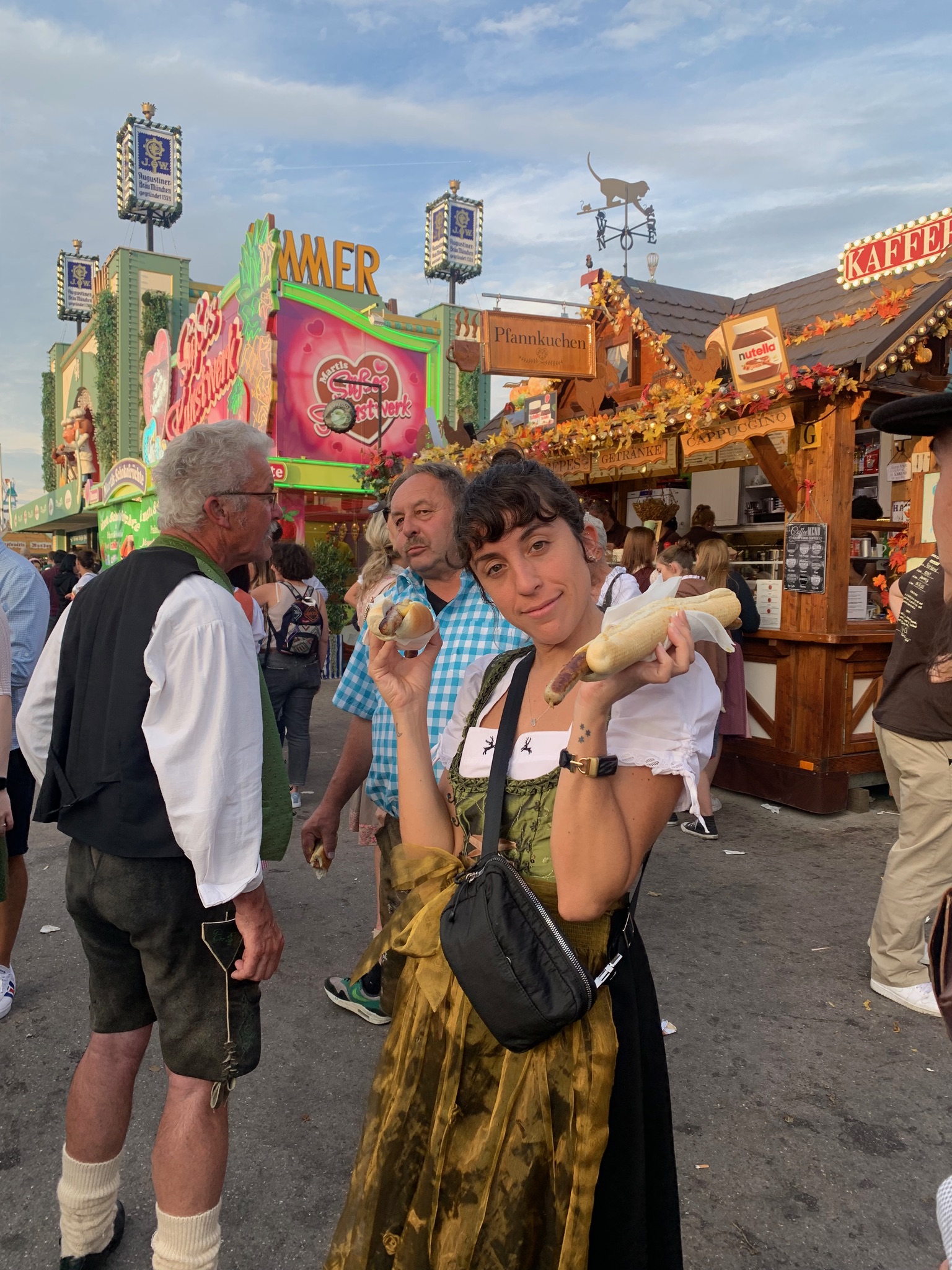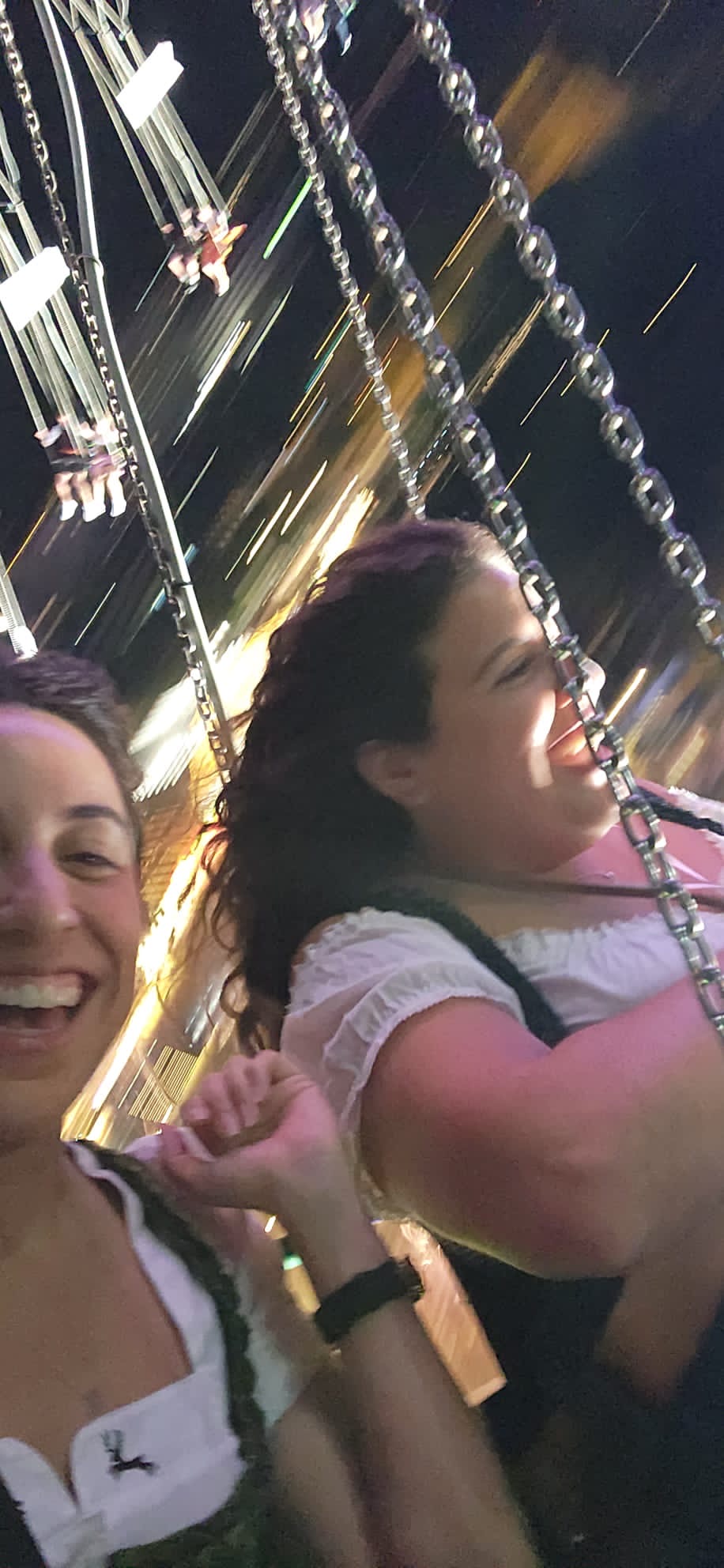 After the museum, we went back and changed into our dirndls for one last taste of the festival. 1/2 meter hot dogs and steins galore we sang the songs and danced. My sister and I stayed longer not ready for the festivities to end. We made friends with flight attendants from Ryan Air and went up 100 ft on the swings. The night was complete with a quick drunk nap on the Ubann finally making it back to the hotel.