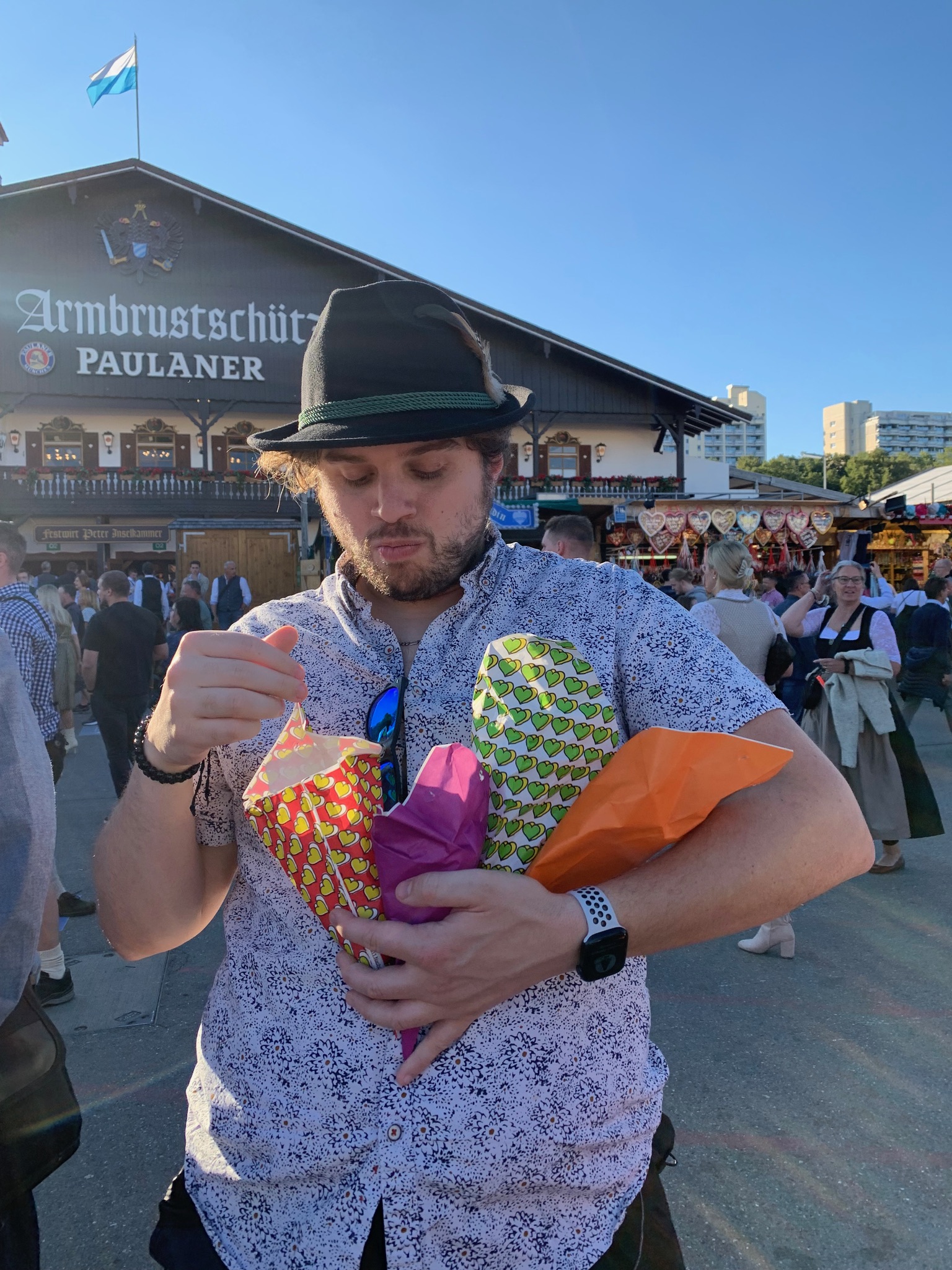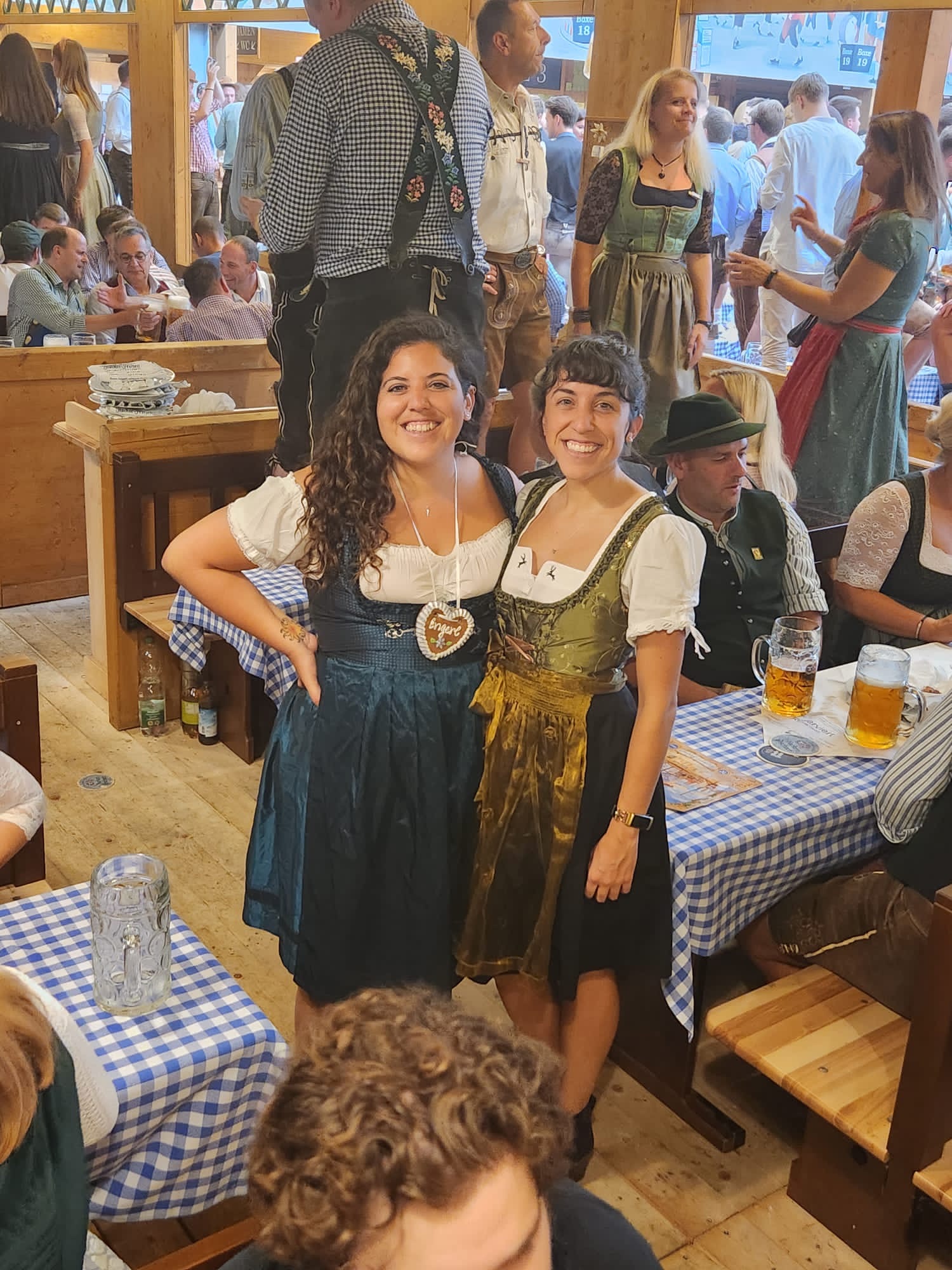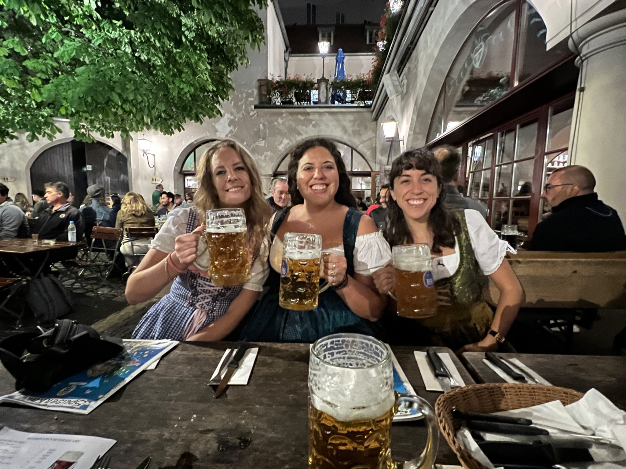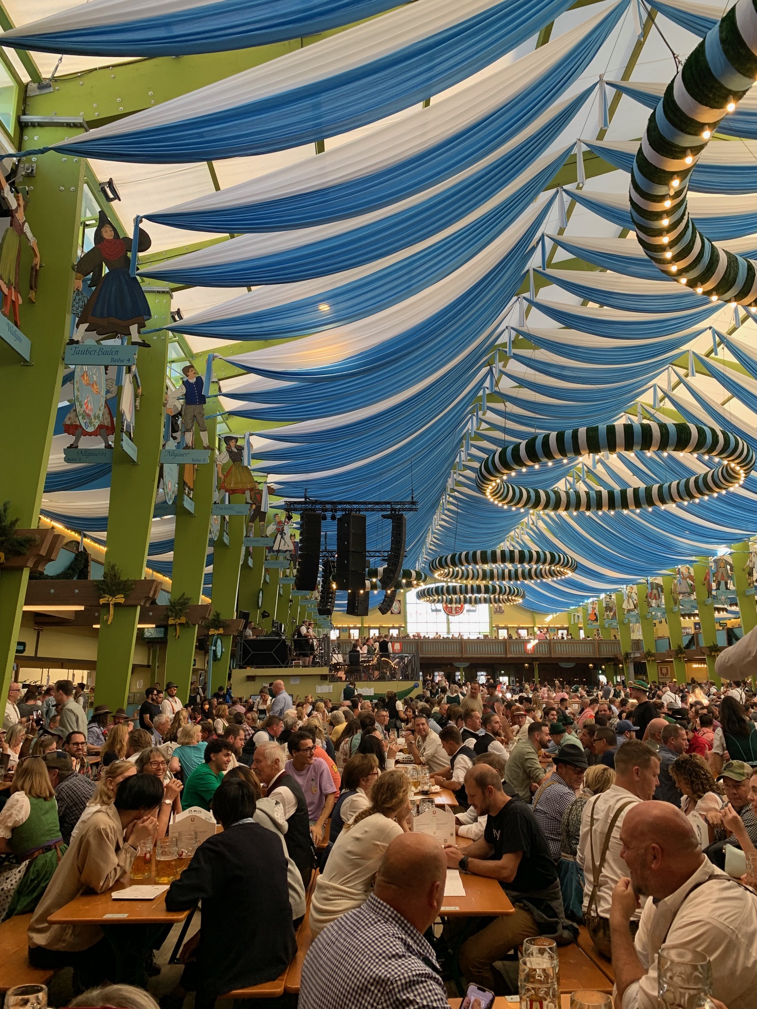 Having 6 of us we opted to reserve a table for the first experience. Back in 2015 when I was a young woman in my 20s we ran around the tents grabbing spaces where we can. Now in 2023 I want a confirmed location. The day time experience is more family friendly and much calmer overall. We enter the tent, check in, and get escorted to our reserved table. We order steins and yell prost! Feeling more confident we spend the rest of the afternoon hopping from tent to tent getting better at finding the space. By the end of the day we are standing on the benches screaming what we think the German song lyrics are.