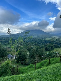 After spending a week in Manual Antonio I was ready to visit another town. I planned to take the bus up to La Fortuna which sits outside of the Arenal Volcano. The bus picked me up and after gathering a couple more passengers we headed north and inland. The roads are so windy that I started feeling car sick. One of the travelers gave me her ginger. Smelling that helped calm my stomach. As always, shout out to the universe for taking care of me! I would recommend not driving, the buses are excellent and the roads harrowing.