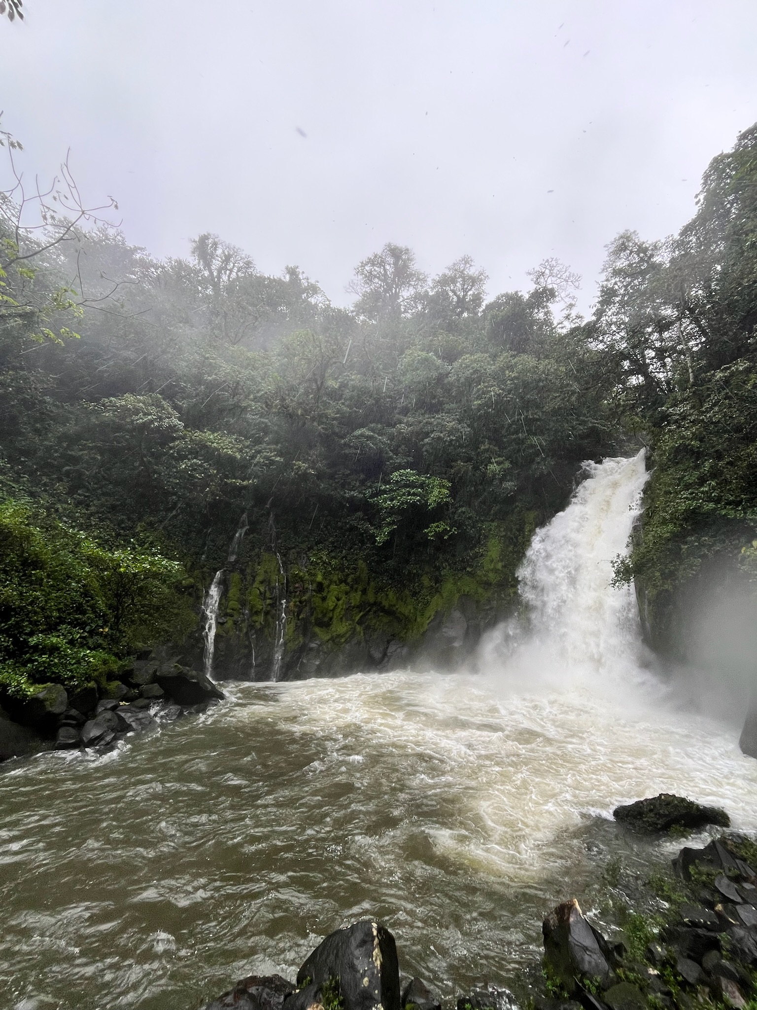 - El Salto (Rope Swing) – I walked from downtown down to this river waterfall. Due to the rain we had had so far this January the water was running fast and white. The idea of jumping in on a rope swing sounded insane. Would be a gorgeous place to swim if it wasn’t running that fast. From there I walked towards Fortuna waterfall and hitchhiked before the large vertical climb. Thanks to the hotel worker and his dog Chanel for the lift.